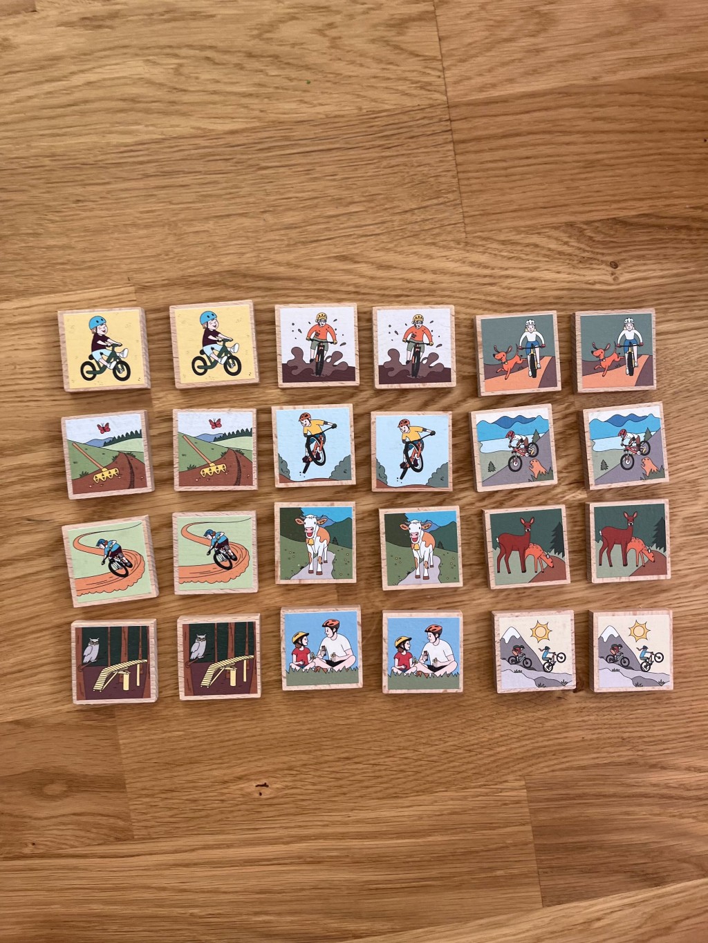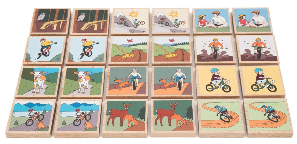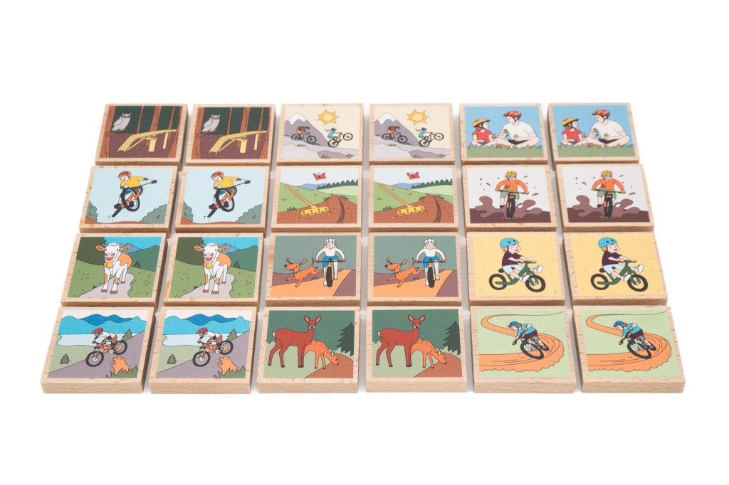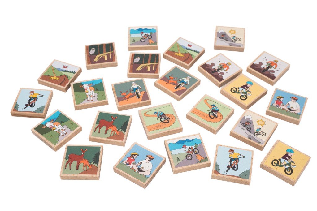 Tohle pexeso vzniklo přesně v duchu "od bikerů pro bikery a jejich malé parťáky"! Dali jsme hlavy dohromady a sepsali ty nejtypičtější momenty, které každý z lesa zná – krávu přes cestu, nadšení ze společné palby terénem, nebo právě dostavěný měkký trail, co ti někdo rozjel. Mezi obrázky jsme schovali i pár milých zvířátek a detailů, které potěší děti, zatímco dospělí v pexesu snadno poznají situace ze života za řidítky.